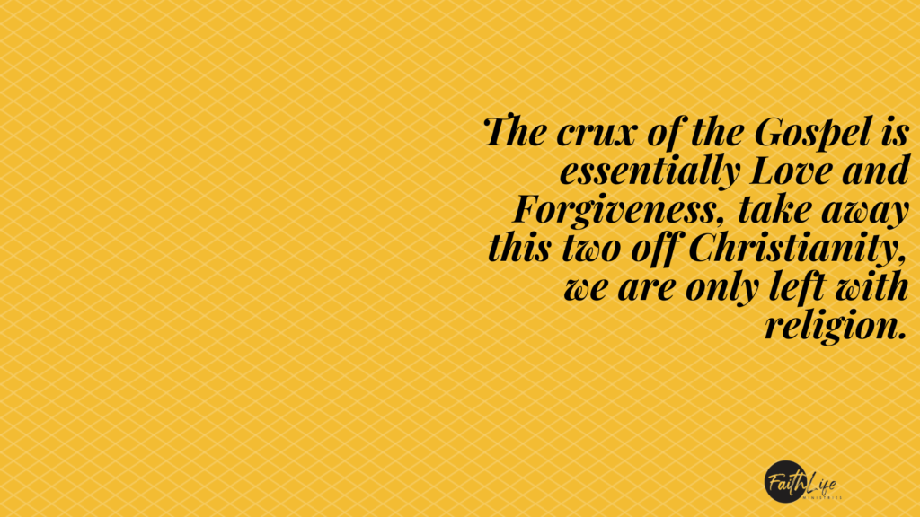 The crux of the Gospel is essentially Love and Forgiveness, take away this two off Christianity, we are only left with religion. Our opening text (begining from verse 1) says to us to be followers of Christ as beloved children would imitate their father. We are not left in the dark on how to get this done; daily we are to walk in love. Treating others with the God kind of love is so vital to our lives because it is the answer to so many of lives problem. A quick reminder on how Jesus loved us, he died for us while we are yet lost in our sin and now we are called children of God.