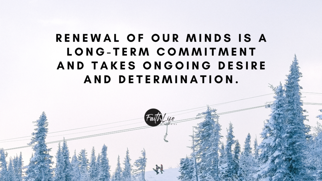 Renewal of our minds is a long-term commitment and takes ongoing desire and determination. Your mind is powerful, and it’s had its own way for a long time. To reshape, reform, and renew your mind is going to take effort. It is true that as a man thinks in his heart so is he. You must be reflecting the owner of your new identity, who is Jesus Himself. This mirroring of your Redeemer is not an overnight makeover, but one that comes from wanting to live a higher life, not as people of the world know the high life, of glitter and glam, but one that truly reflects a glory that is not of this earth.