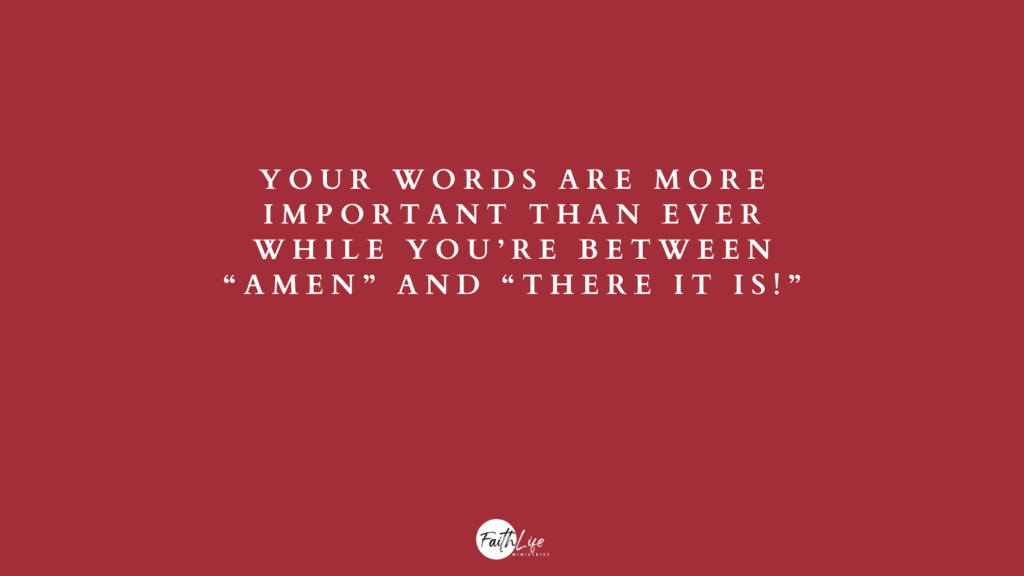So waiting on the Lord isn’t passively hoping that something will happen sometime soon. It’s eagerly awaiting God’s answer, actively expecting and speaking words that agree with His Word. Waiting mode is a crucial time of faith. Your words are more important than ever while you’re between “Amen” and “There it is!”