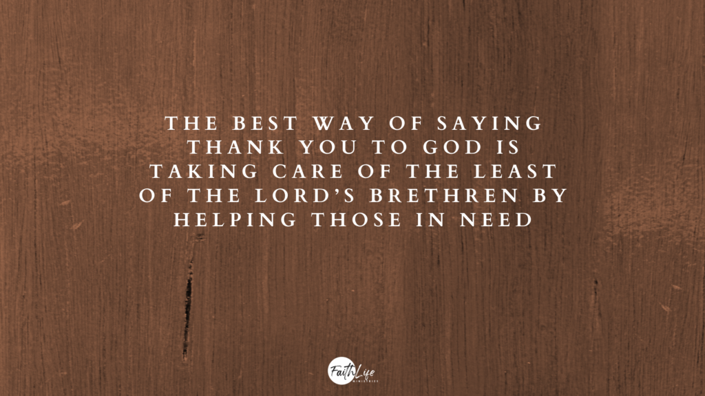 The best way of saying thank you to God is taking care of the least of the Lord’s brethren by helping those in need: the widows, the orphans, those who are sick, prisoners, or people who are without food or clothing. What does it cost to say thank you to the shop attendant? What does it cost to say thank you to the waitress who just served you a tasty meal?