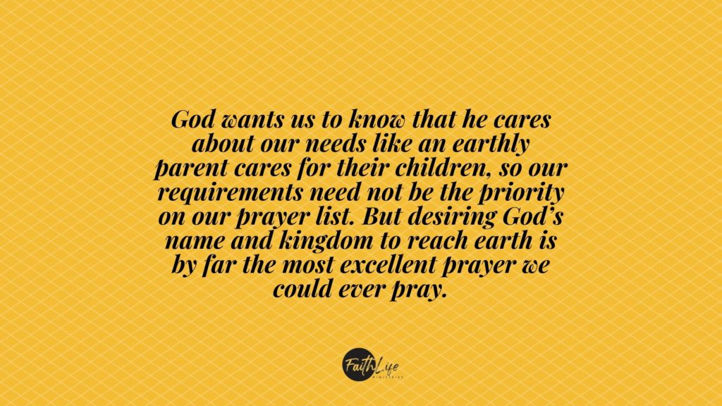 Jesus help me to recognize that your agenda for the world comes first during my time of prayer. And help me see with the eyes of faith that my needs are your concerns as well, Amen.