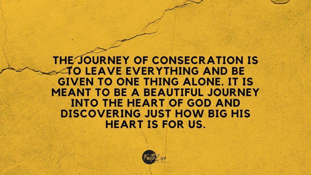 The journey of consecration is to leave everything and be given to one thing alone. It is meant to be a beautiful journey into the heart of God and discovering just how big His heart is for us. This turned out to be quite a hard concept for most of the Israelites, and it didn’t seem to fulfill their dream idea of freedom. They had been slaves in Egypt for more than 400 years and God had come to their rescue. They had known nothing but slavery for many generations. Talk about a big feat to get the mindset of slavery out of them and get the mindset of sonship and true freedom into them.