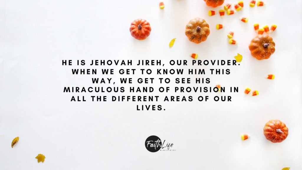 Thank You, God, that You are Jehovah Jireh, My Provider. I am so thankful that You love to show up miraculously in the lives of Your children. Help me to trust in You and believe that You want to provide for me in every situation in my life. I know that nothing is impossible with You.