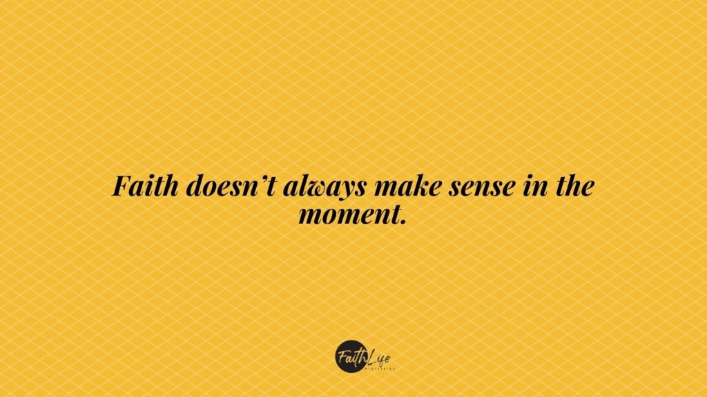Faith doesn’t always make sense in the moment. Maybe you get the feeling you need to pray for a old classmate or colleague at work or write them an encouraging note. Or maybe you feel God nudging you to start a conversation with someone, even though it looks like you have nothing in common. Just obey.