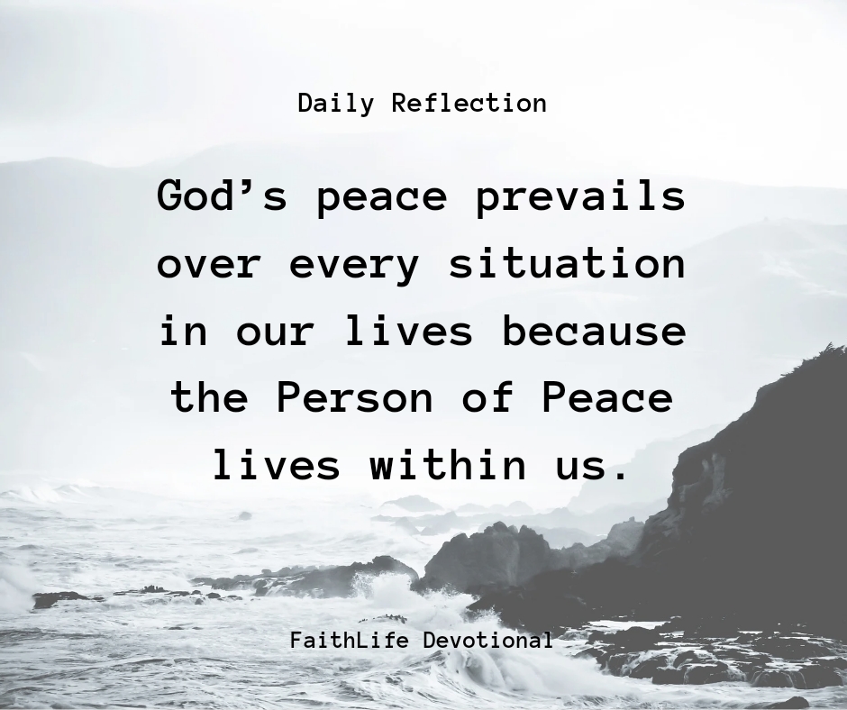 Though we can look at the circumstances of the world and feel overwhelmed, we are not here to announce the enemy’s victory; we are here to announce his defeat. The same Spirit that raised Christ from the dead dwells in us. Hopelessness has been defeated. His peace—that which touches our spirit, soul, and body—tames every opposition. God’s peace prevails over every situation in our lives because the Person of Peace lives within us.
