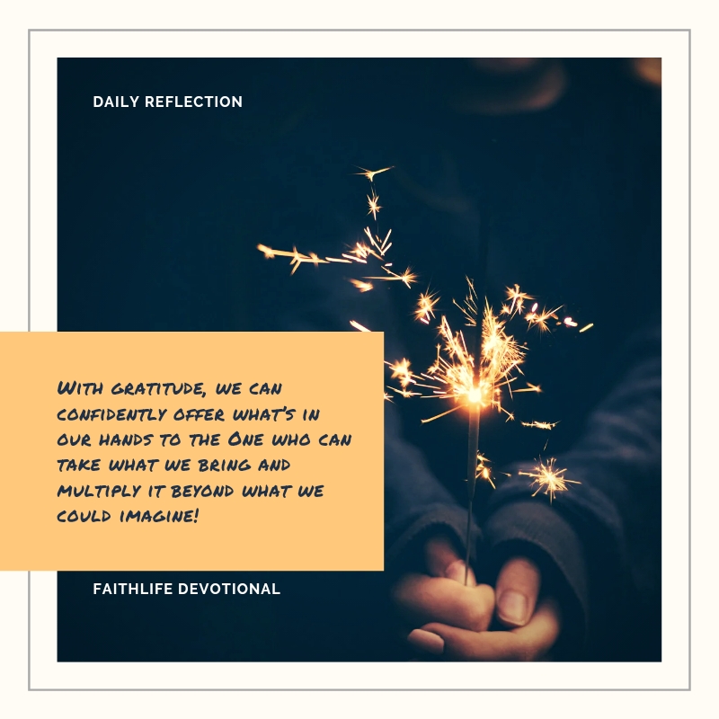 How easy it is to look at the meager offering we hold or the scarcity of our situation and miss the opportunity for the miracle. It’s in that moment, with gratitude, that we can confidently offer what’s in our hands to the One who can take what we bring and multiply it beyond what we could imagine!