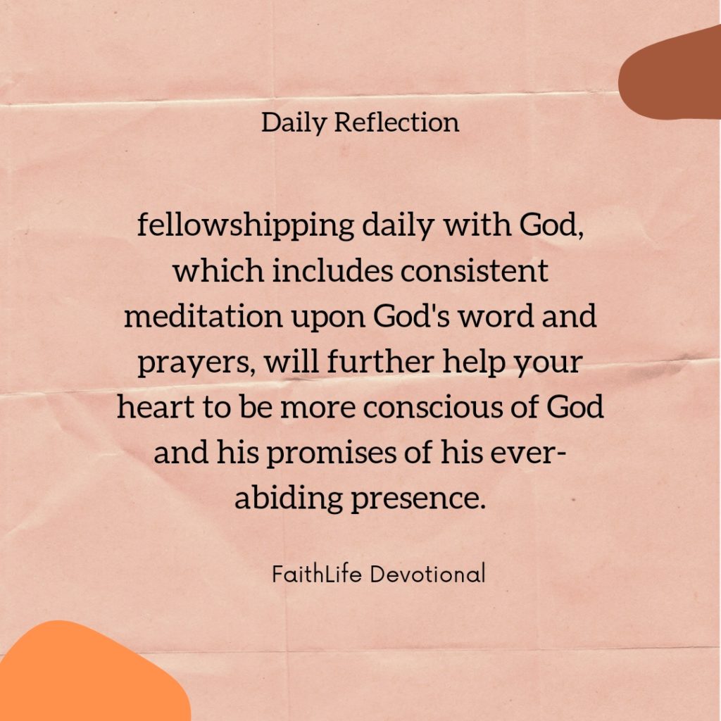 Prioritizing God in your life will help your heart build a strong God-consciousness. More so, fellowshipping daily with God, which includes consistent meditation upon God’s word and prayers, will further help your heart to be more conscious of God and his promises of his ever-abiding presence. Don’t ever see praying as a burden or obligation you must fulfill religiously.