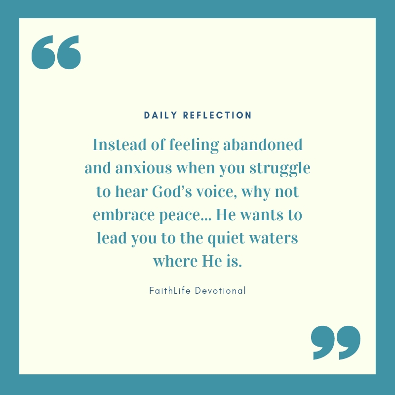 Instead of feeling abandoned and anxious when you struggle to hear God’s voice, why not embrace peace? He wants to lead you to the quiet waters where He is. He is waiting for you to enjoy the peace that transcends human understanding.