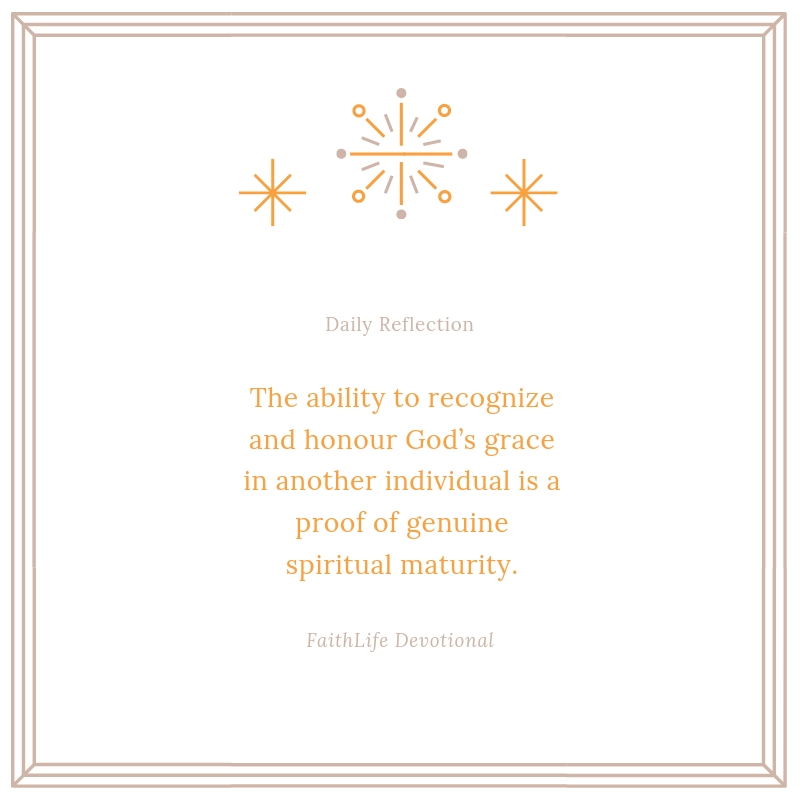 Beloved, the ability to recognize and honour God’s grace in another individual is a proof of genuine spiritual maturity. Remember, that we are all parts of the same body. Therefore, we must seek, and continue to celebrate the grace of God upon others.