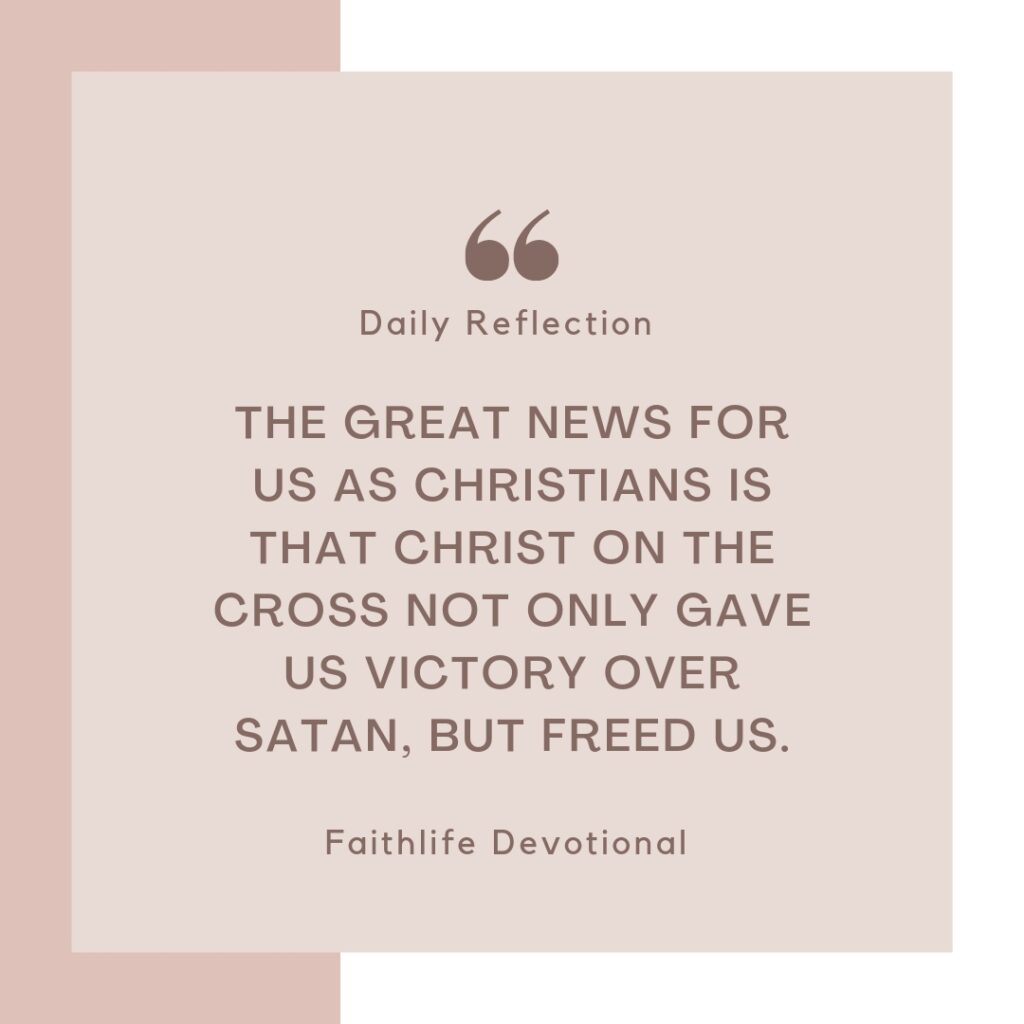 But glory to God, the great news for us as Christians is that Christ on the cross not only gave us victory over Satan, but freed us. He took us out of the kingdom of evil and sin, so that sin could no longer obligate us to sin ever again.