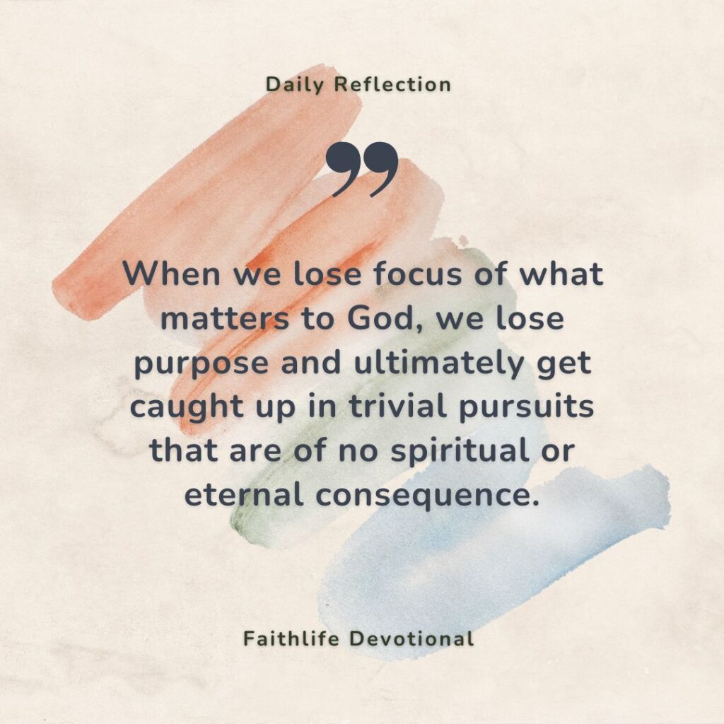 When we lose focus of what matters to God, we lose purpose and ultimately get caught up in trivial pursuits that are of no spiritual or eternal consequence.