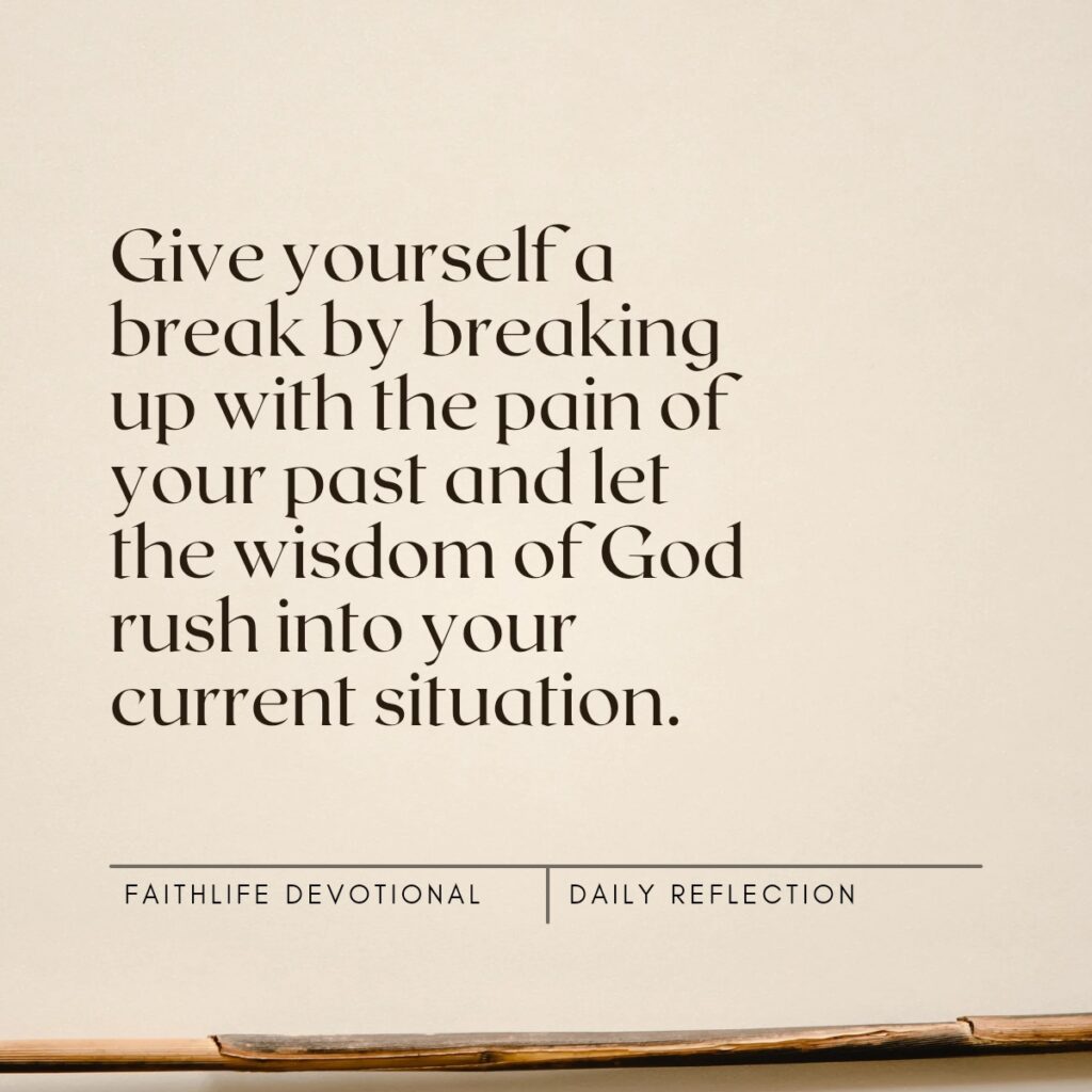 We might define controversy as a conflict between two or more people, but many times it comes from within. How do you talk to yourself? Do you slice yourself with sarcasm, call yourself ugly names, or let your mind race to every mistake you have ever made and drag the past into your present situation? Stop! Give yourself a break by breaking up with the pain of your past and let the wisdom of God rush into your current situation. Stay calm and stay present; rest in God’s forgiveness and faithfulness in your past, and let him fill your mind with wisdom in this moment.