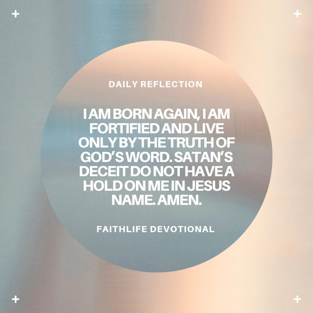 I am born again, I am fortified and live only by the truth of God’s word. Satan’s deceit do not have a hold on me in Jesus name. Amen.