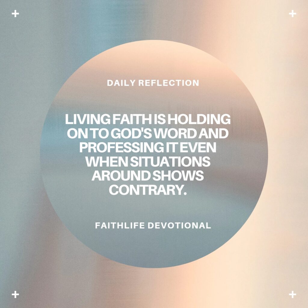 Living faith is holding on to God’s word and professing it even when situations around shows contrary. Trials comes to test your conviction about God’s word. The Lord is reminding you again this day to believe on every of His words for you. Notice from the text, God declared a thing and he is committed to making it happen, only that you need to believe Him so as to be rightly positioned for the fulfilment of such promises.