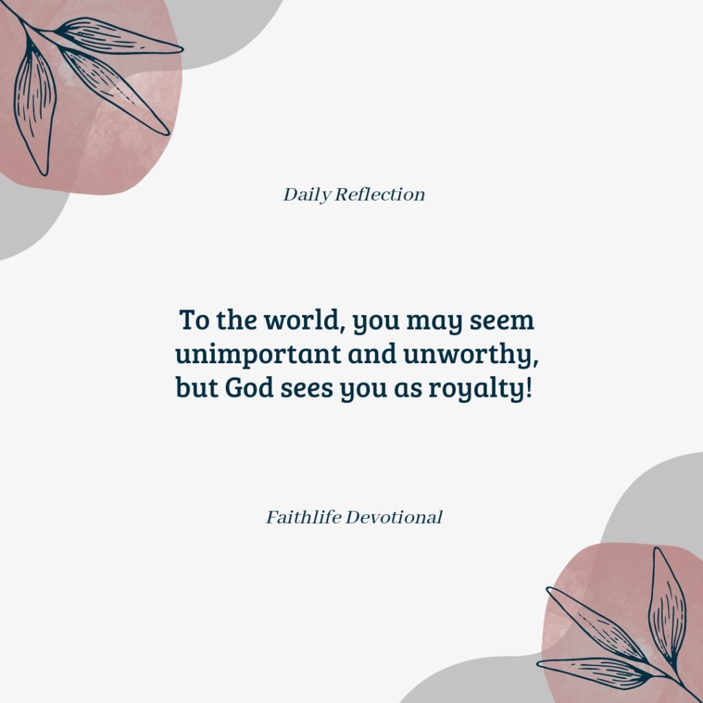 To the world, you may seem unimportant and unworthy, but God sees you as royalty!