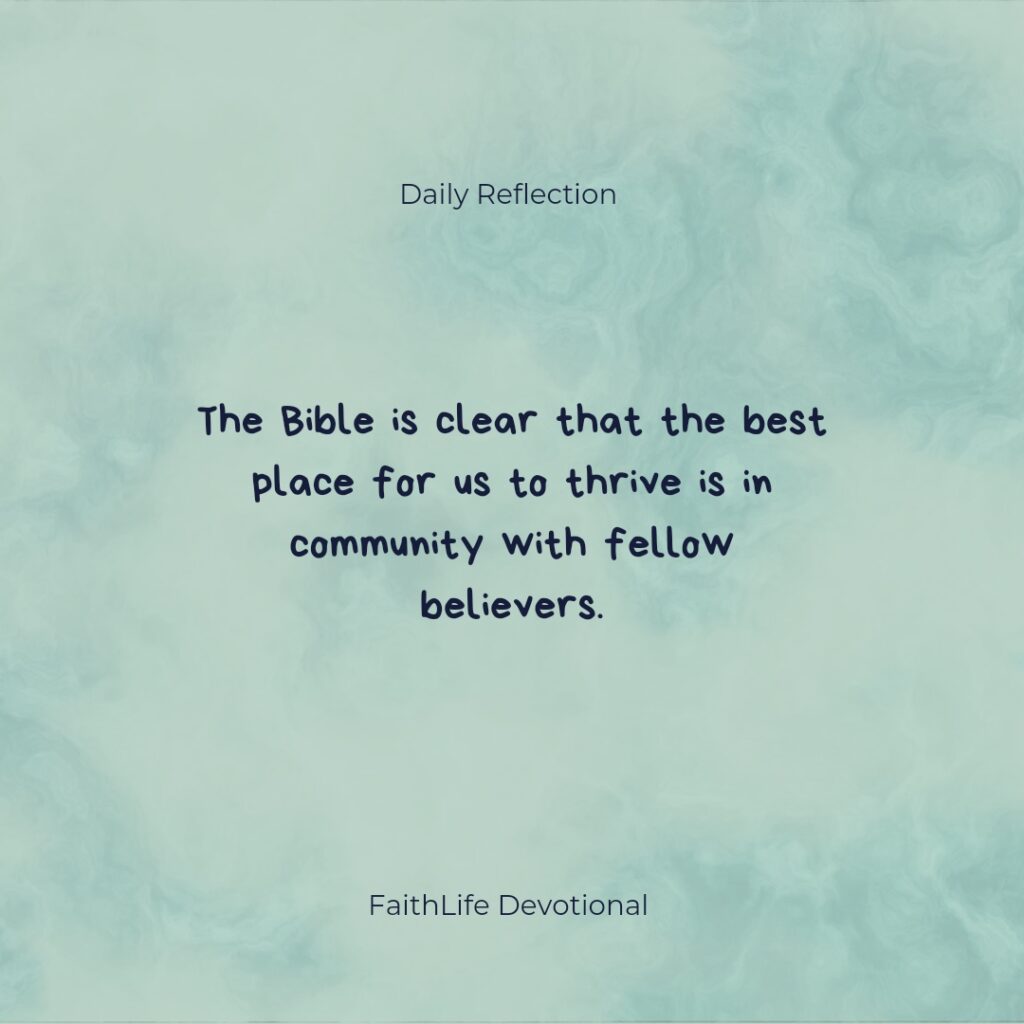 The Bible is clear that the best place for us to thrive is in community with fellow believers. Romans 12:5 teaches us that we are all “one body in Christ, and individually members of one another.” Hebrews 10:24-25 says, we should not neglect meeting together And Ephesians 4:15-16 teaches us that “speaking the truth in love, we are to grow up in every way into Christ.