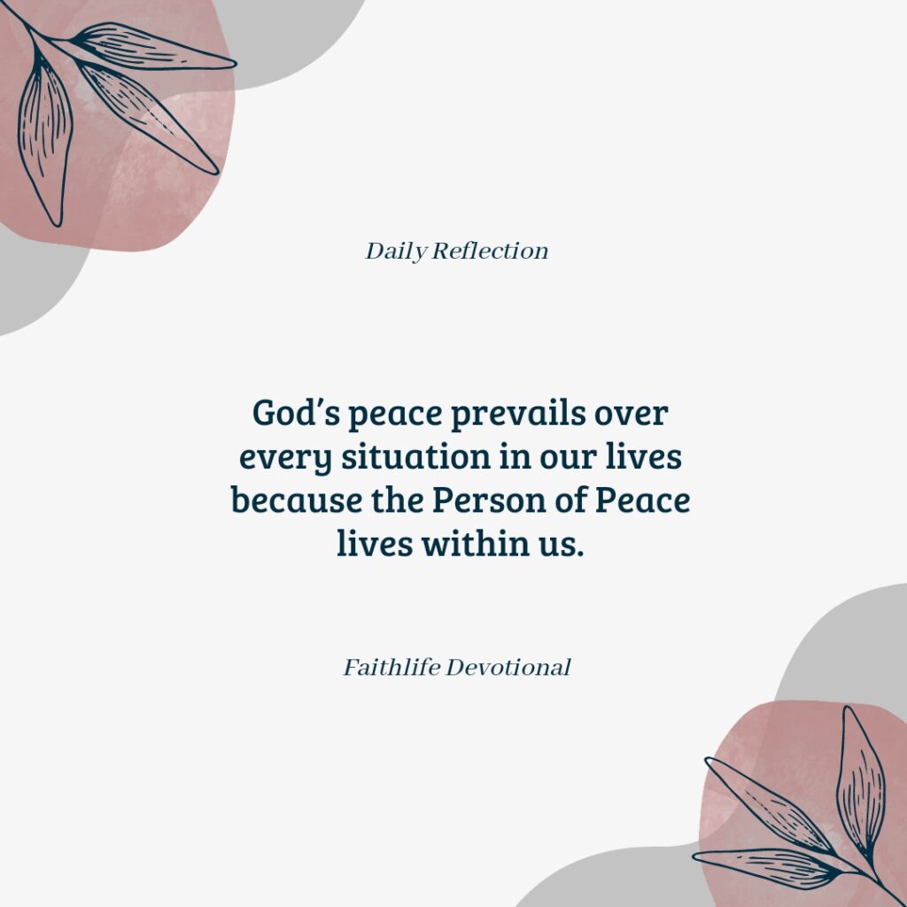 Though we can look at the circumstances of the world and feel overwhelmed, we are not here to announce the enemy’s victory; we are here to announce his defeat. The same Spirit that raised Christ from the dead dwells in us. Hopelessness has been defeated. His peace—that which touches our spirit, soul, and body—tames every opposition. God’s peace prevails over every situation in our lives because the Person of Peace lives within us.
