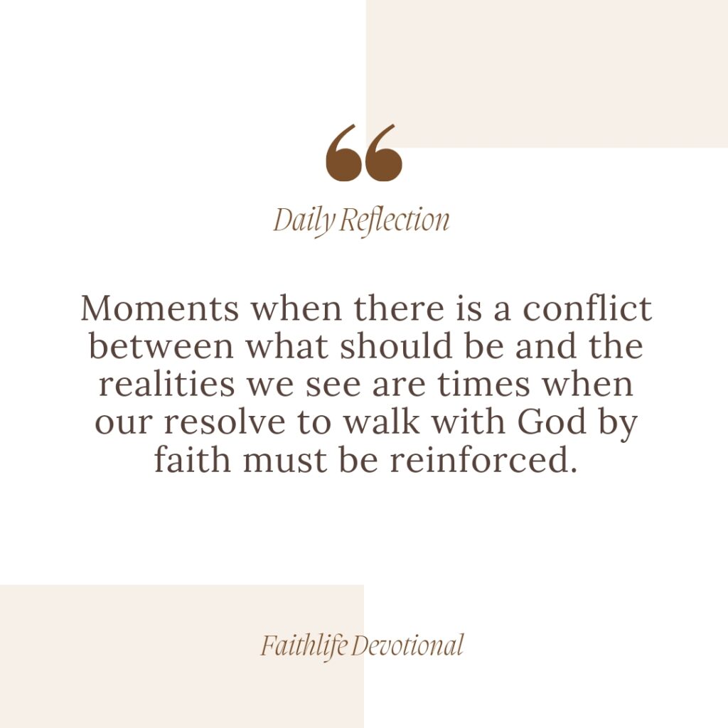Moments when there is a conflict between what should be and the realities we see are times when our resolve to walk with God by faith must be reinforced. Abraham is regarded today as the father of faith chose to keep walking by faith.