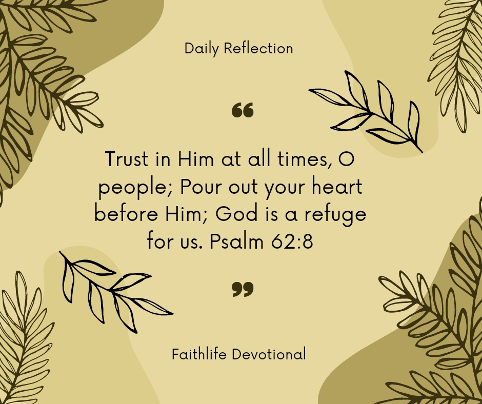 Devotional Reading: Trust in Him at all times, O people; Pour out your heart before Him; God is a refuge for us. Psalm 62:8