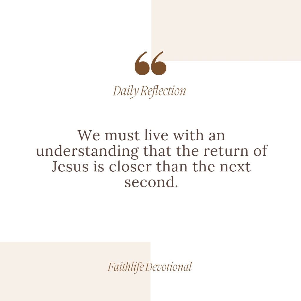 This was why Paul called the believers at Rome to a reminder that each passing day simply meant that the return of Jesus Christ is closer. We must live with an understanding that the return of Jesus is closer than the next second. We must refuse to be carried away with the activities of the world around us, or the concerns of our days. We must remain clear-eyed, “looking for the blessed hope and the appearing of the glory of our great God and Saviour, Christ Jesus” (Titus 2:13).