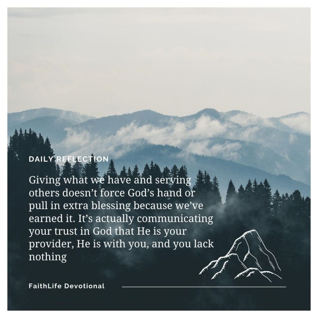 Giving what we have and serving others doesn’t force God’s hand or pull in extra blessing because we’ve earned it. It’s actually communicating your trust in God that He is your provider, He is with you, and you lack nothing—just like Psalm 23:1 says. When we hold onto what we have, we end up like the man who hid his talent. What we have can’t grow or multiply unless we do something with it. You don’t need a big audience; you just need to look around you. Who can you be a blessing to? When we’re not afraid to serve others and give away what we have, it shows God that we’re ready for more.