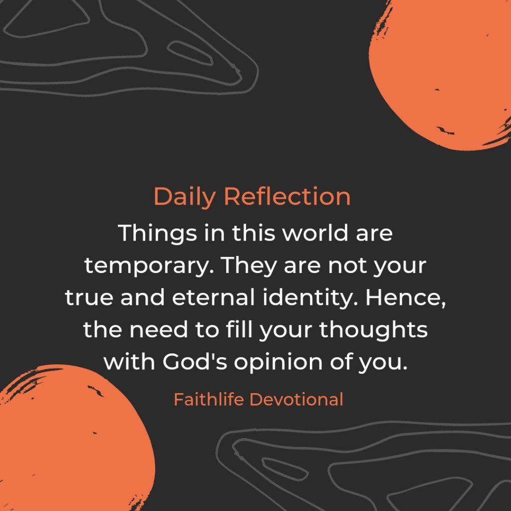You must learn to renew your mind daily from the worlds opinions of you. The kind of identity that you see in this world is not going to make you happy. Things in this world are temporary. They are not your true and eternal identity. Hence, the need to fill your thoughts with God’s opinion of you.