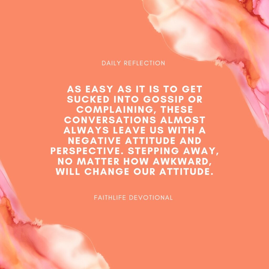 No situation or circumstance should dictate how we react. Our attitude is a decision that has the power to change the life we live. As life happens today, be aware of what attitude comes naturally to you and remember the decision is yours. What is your next step in changing your attitude? Start somewhere, and watch how God honors each of our faithful steps.