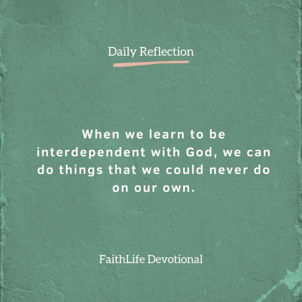 God, thank You that you didn’t make me figure it all out on my own. I am so thankful that You made me for a beautiful interdependent relationship with You! Help me to remember that You want to partner with me so that we can do impossible things. I am so thankful that You work out even the most difficult situations in my life for my good.