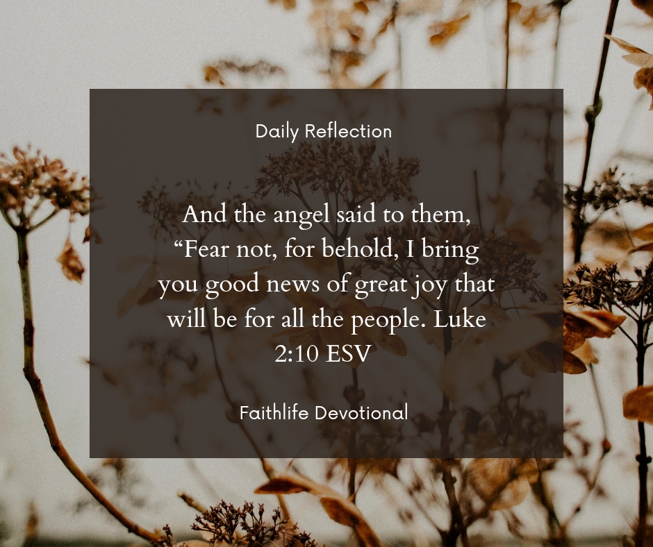 Devotional Reading: And the angel said to them, “Fear not, for behold, I bring you good news of great joy that will be for all the people. Luke 2:10 ESV