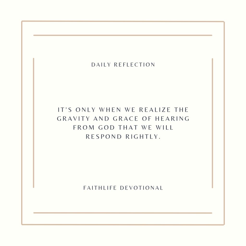 Yet, there’s a problem when we long to hear or sing a certain song more than we want to hear from God’s Word. What if all it took was opening God’s Word to cause us to stand and shout, or to bow with our faces to the ground? It’s only when we realize the gravity and grace of hearing from God that we will respond rightly. Amazingly, we have access to this Word on a daily basis. May God give us the grace to respond to it rightly.