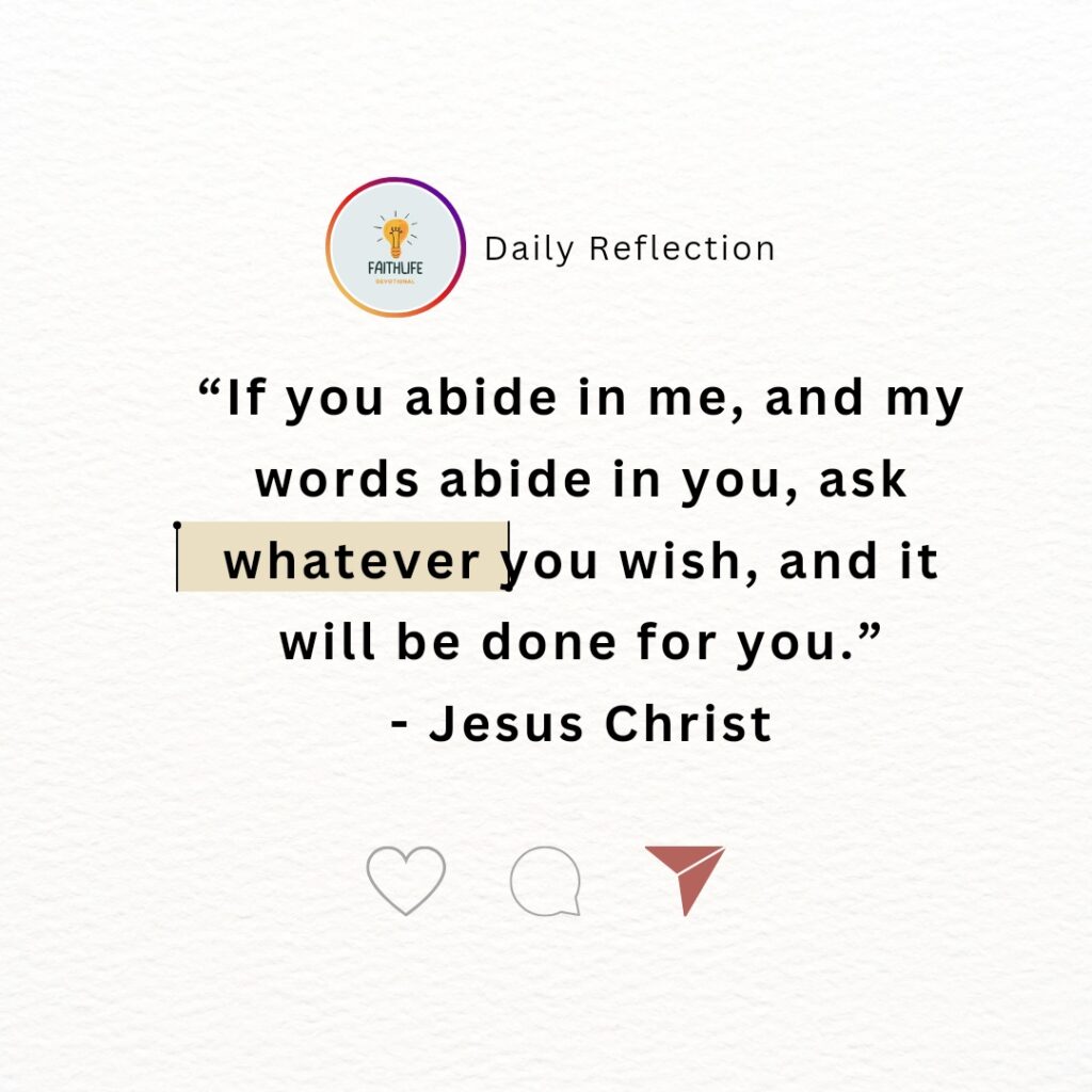 When we trust in the words of Jesus, we can be confident that we’re asking for things that align with God’s will. Based on this truth, the secret to success in prayer is twofold. First, make your wants God’s wants. Second, ask for whatever you want. Trust God to keep his Word.