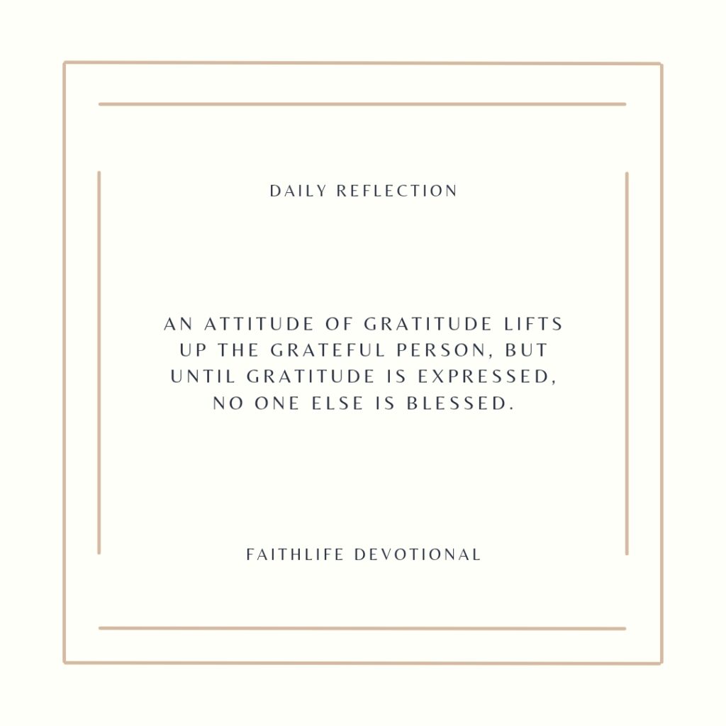 An attitude of gratitude lifts up the grateful person, but until gratitude is expressed, no one else is blessed. Just as confessing with our mouth and believing in our heart that God raised Jesus from the dead establishes our salvation and blesses us (Romans 10:9), being grateful and expressing gratitude, establishes our gratefulness and blesses others.