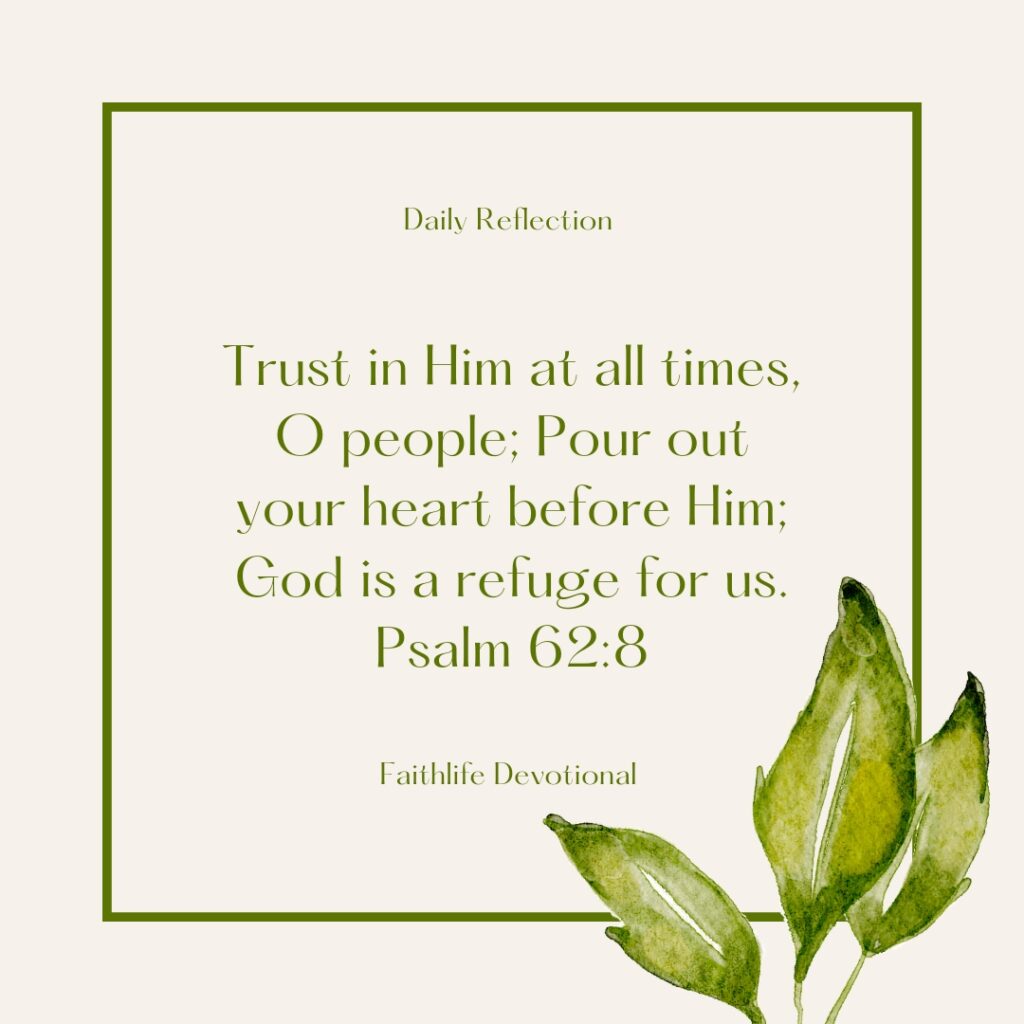 Devotional Reading: Trust in Him at all times, O people; Pour out your heart before Him; God is a refuge for us. Psalm 62:8