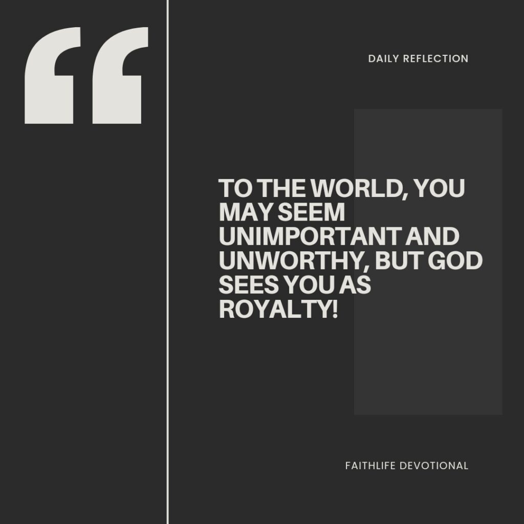 To the world, you may seem unimportant and unworthy, but God sees you as royalty!