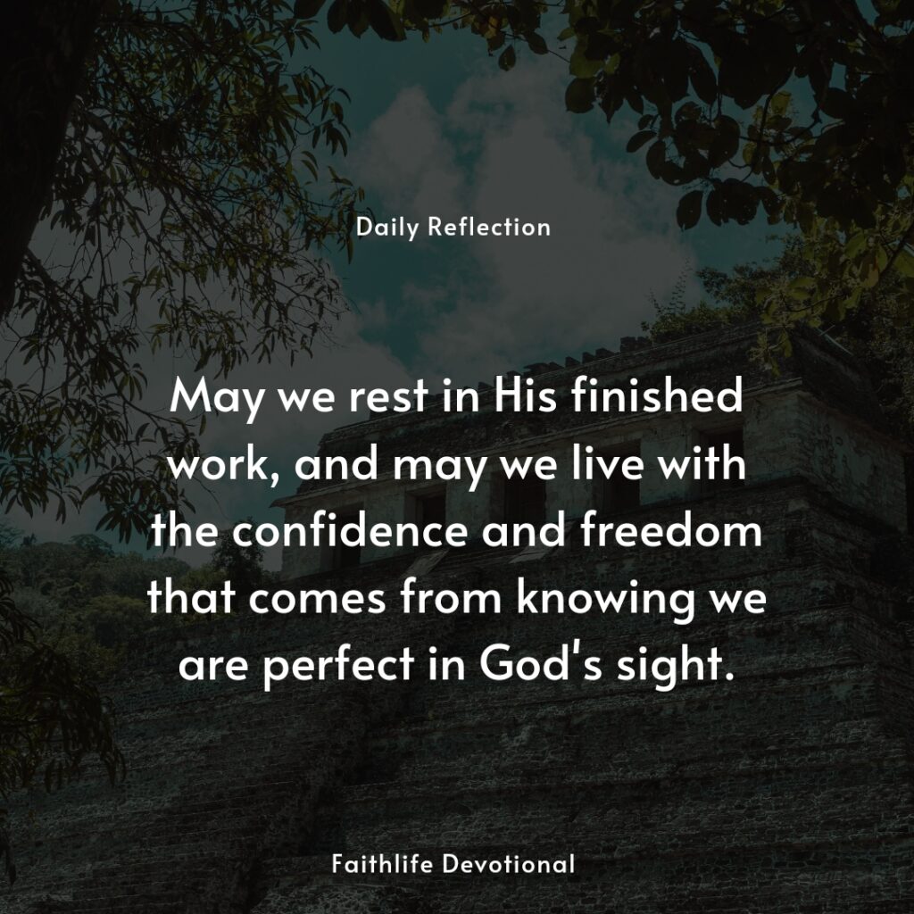 As we go about our day, let us remember the difference between the shadow and the substance. Let us not try to live by the rules and regulations of the law, but by the power and grace of Jesus. May we rest in His finished work, and may we live with the confidence and freedom that comes from knowing we are perfect in God’s sight. Amen