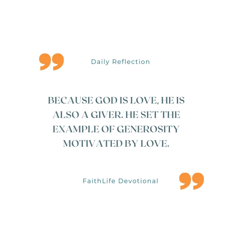 God evaluates our actions on the basis of our attitudes. John 3:16 reveals His attitude toward giving: “For God so loved the world, that he gave his only begotten Son.” Note the sequence. Because God loved, He gave. Because God is love, He is also a giver. He set the example of generosity motivated by love.
