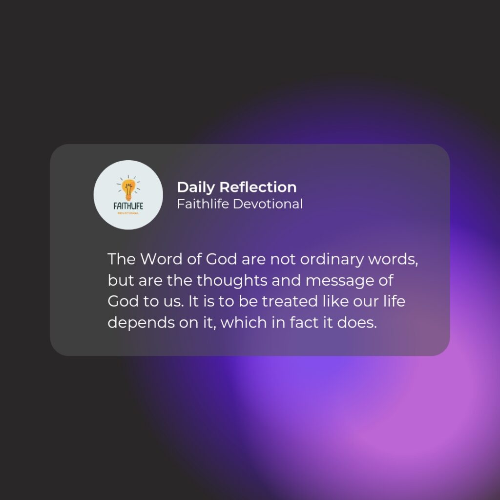 Our attitude towards the Word of God determines the place God holds in our life – The Word of God are not ordinary words, but are the thoughts and message of God to us. It is to be treated like our life depends on it, which in fact it does.