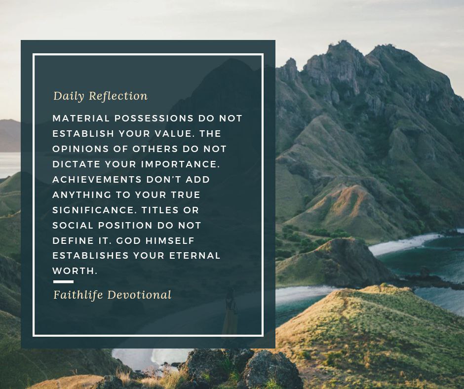 Material possessions do not establish your value. The opinions of others do not dictate your importance. Achievements don’t add anything to your true significance. Titles or social position do not define it. God Himself establishes your eternal worth.