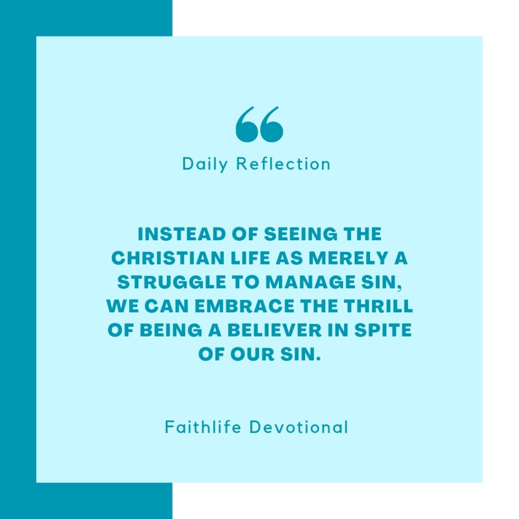 We are indeed prone to wander. We will always struggle against our flesh, the world, and Satan. Instead of seeing the Christian life as merely a struggle to manage sin, we can embrace the thrill of being a believer in spite of our sin. Sin becomes more of a road bump overcome by the power of the Spirit as we speed along toward Christ!