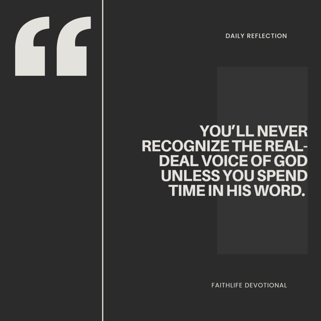 You’ll never recognize the real-deal voice of God unless you spend time in His Word. That’s good news, because you get to decide how much time you spend reading it! The more you do, the more you’ll be able to discern between His voice and a counterfeit voice.