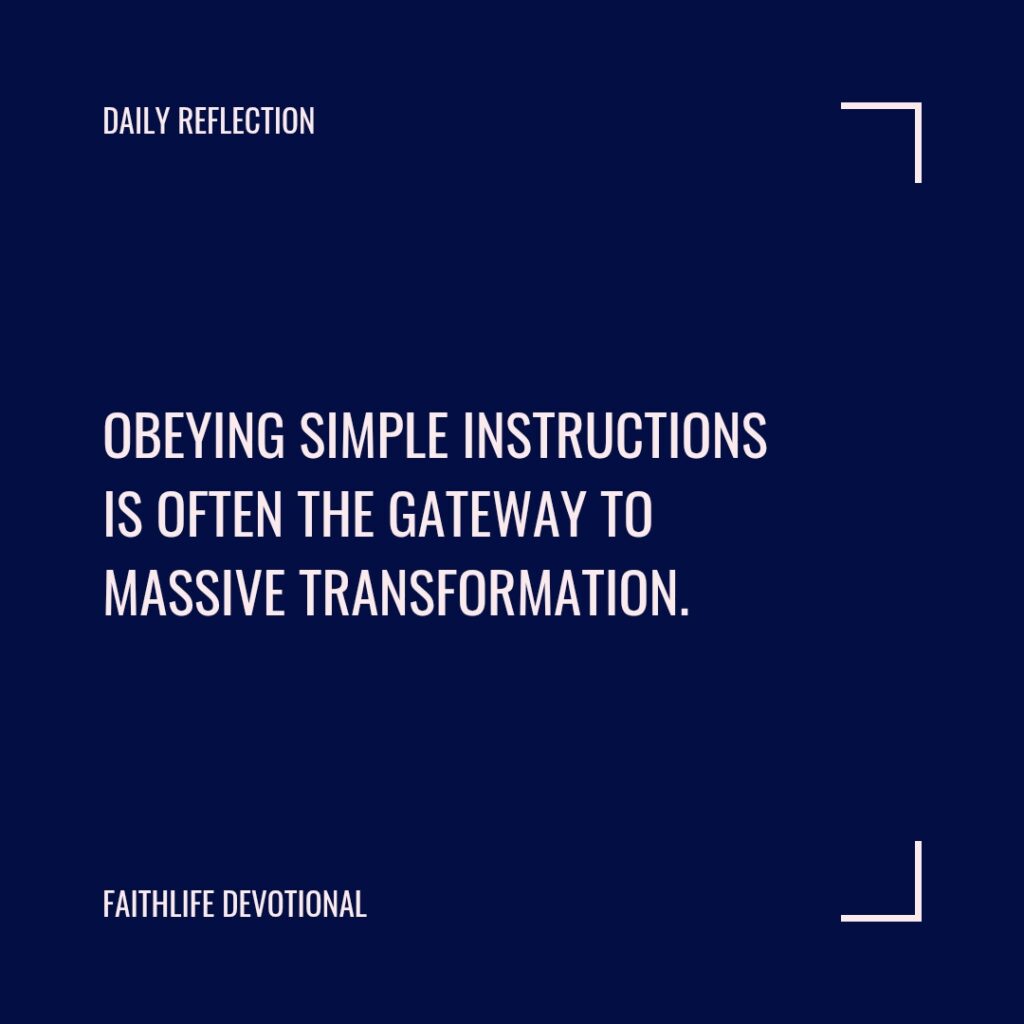 This is how God works, small steps that lead to big victories. The Holy Ghost might ask you to sow a seed, apologize to someone, apply for a job, or even take a break and rest. It may seem unrelated to the miracle you’re expecting, but that’s where faith and trust come in. Obeying simple instructions is often the gateway to massive transformation.