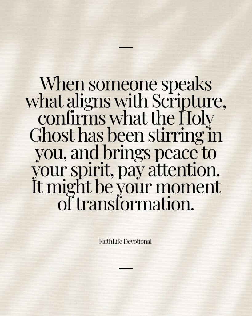 Discernment is key. Not every person is sent by God, but when someone speaks what aligns with Scripture, confirms what the Holy Ghost has been stirring in you, and brings peace to your spirit, pay attention. It might be your moment of transformation.