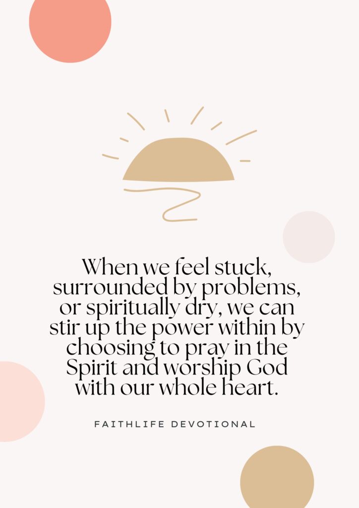 The power of God in you needs to be stirred often. 2 Timothy 1:6 says, “Stir up the gift of God that is in you.” This is like shaking a bottle of juice before drinking it—the sweet stuff often settles at the bottom. If you want full taste, you’ve got to stir it up. For believers, prayer and worship are two major ways to stir spiritual power.