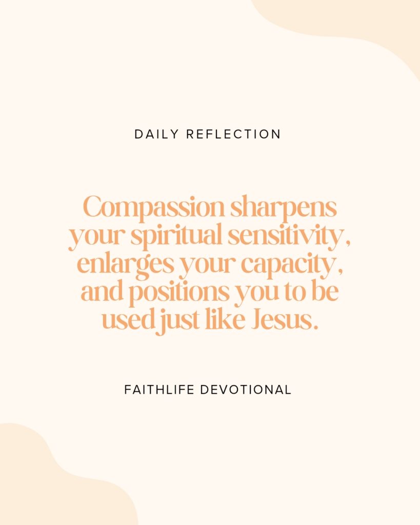 In your daily life, compassion may not always look dramatic. Sometimes it is simply praying for someone when you feel a nudge. Other times it is giving, encouraging someone, or stepping in to help when others ignore a need. When you allow love to flow, the Holy Spirit flows through you. Compassion sharpens your spiritual sensitivity, enlarges your capacity, and positions you to be used just like Jesus. Power is not just in shouting. Power often begins with caring.