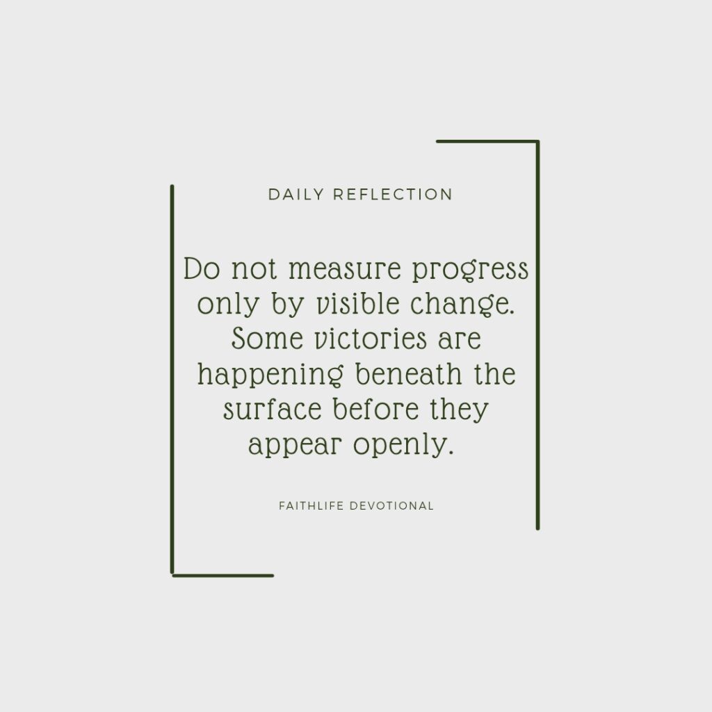 Do not measure progress only by visible change. Some victories are happening beneath the surface before they appear openly. Roots grow before fruits appear. Stay faithful, stay joyful, and stay grounded in God’s word. Your persistence today is preparing tomorrow’s testimony.