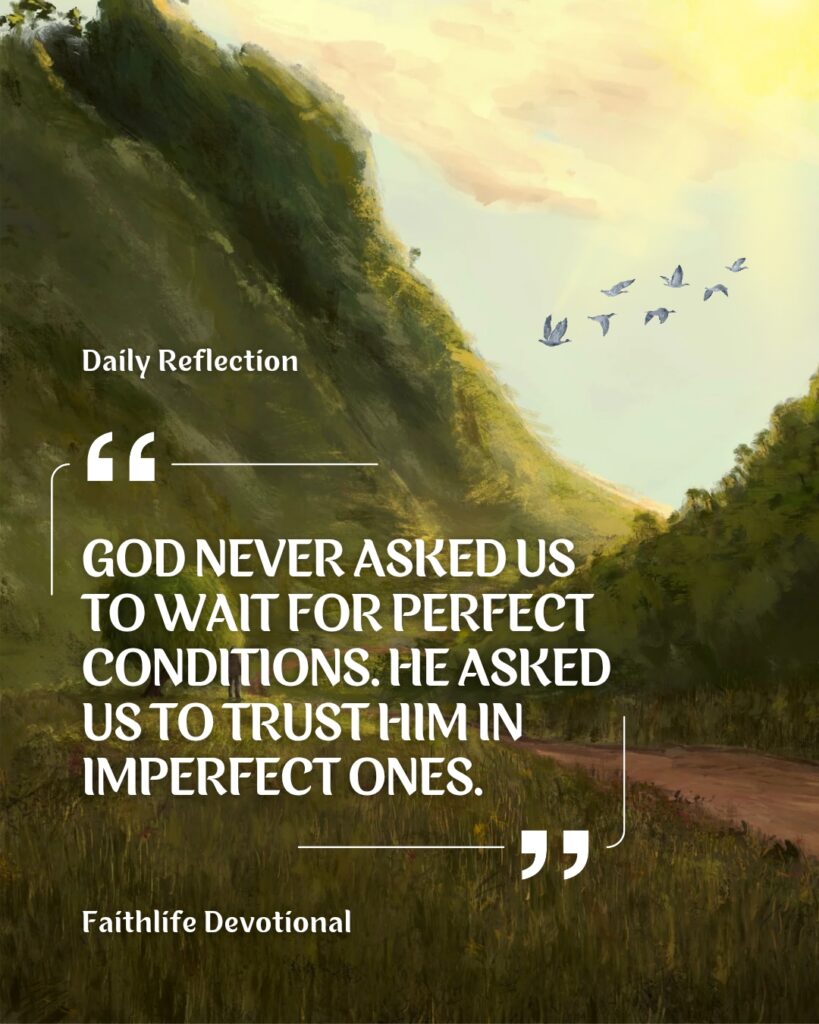 Every day life example shows this clearly. No one ever feels fully ready to start a business, raise children, or step into ministry. If readiness was the requirement, nobody would move forward. God never asked us to wait for perfect conditions. He asked us to trust Him in imperfect ones.