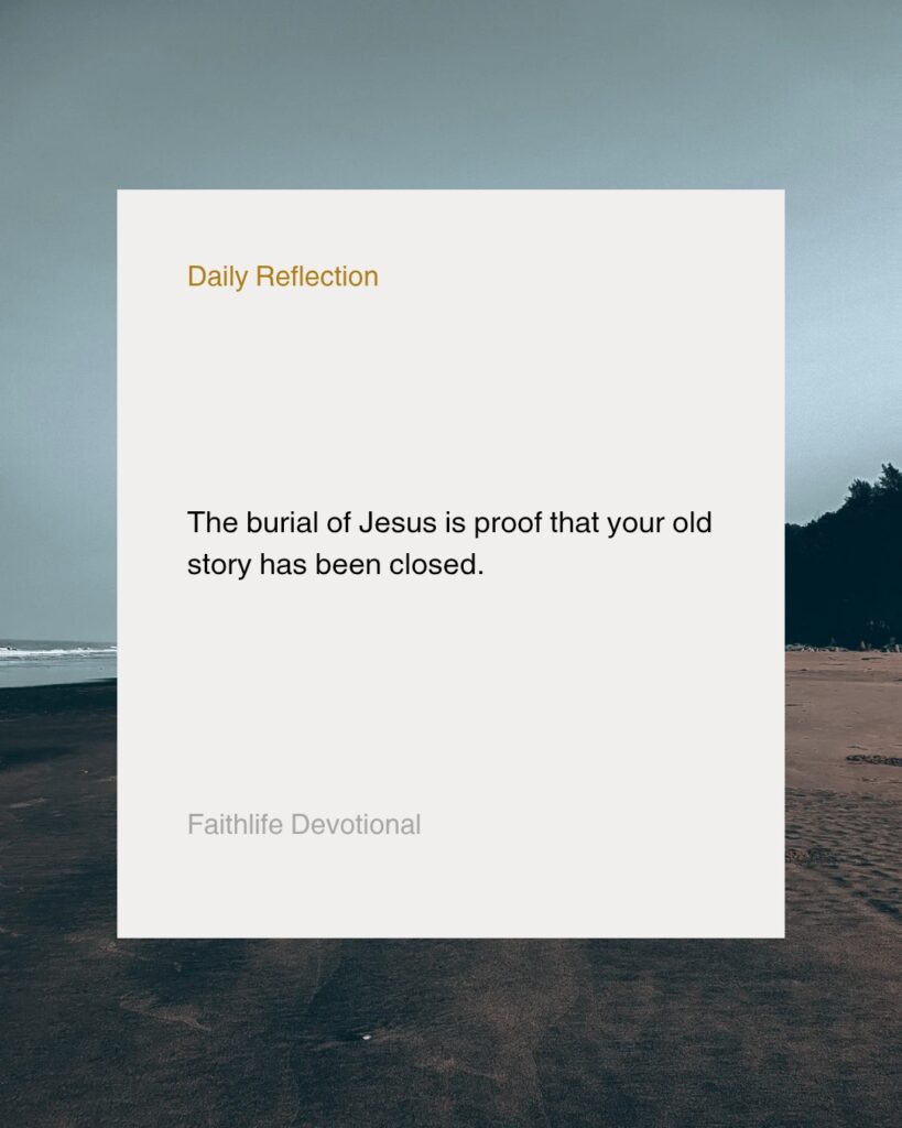 One of the biggest problems in the Christian walk is that many believers still live like their past is still alive. They still introduce themselves using their former identity. “You know me, I am naturally hot tempered.” “You know me, I am the type that cannot forgive easily.” That is like attending a burial service and still calling the dead person on the phone. You are saying hello to what God already said goodbye to. The burial of Jesus is proof that your old story has been closed. Satan loves to bring up your past because he knows that if he can make you live in guilt, you will live like someone who has no future. But the burial is the stamp of heaven saying, “The old chapter has ended. Stop reopening it.”
