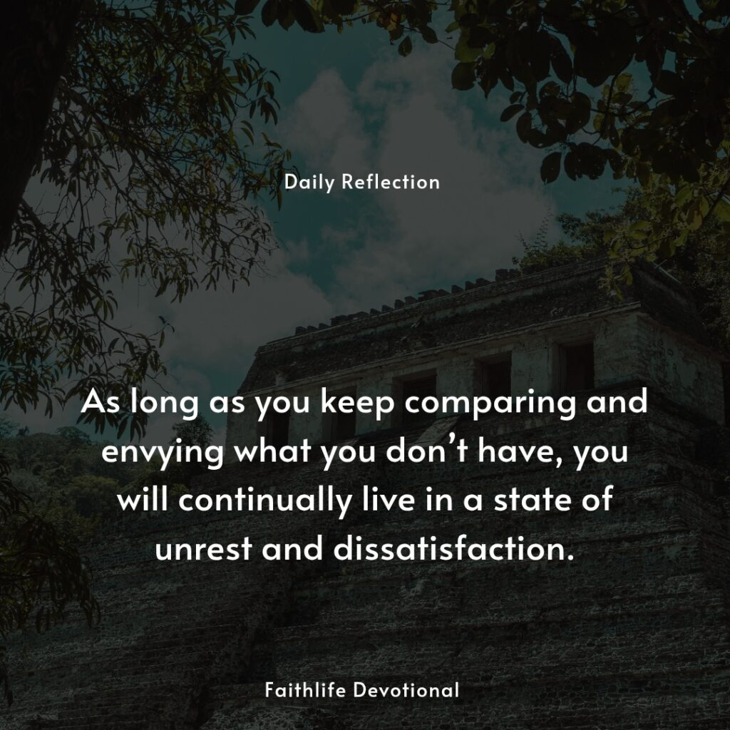 As long as you keep comparing and envying what you don’t have, you will continually live in a state of unrest and dissatisfaction. You will always battle with discontentment until you let Christ be all that you need. Say like Paul “I’ve had good seasons where everything was going well, and I’ve had hard ones where nothing went my way. But through them all, I’ve learned that there’s one secret to being content… And I find that the strength of Christ explosive power infuses me to conquer every difficulty.”